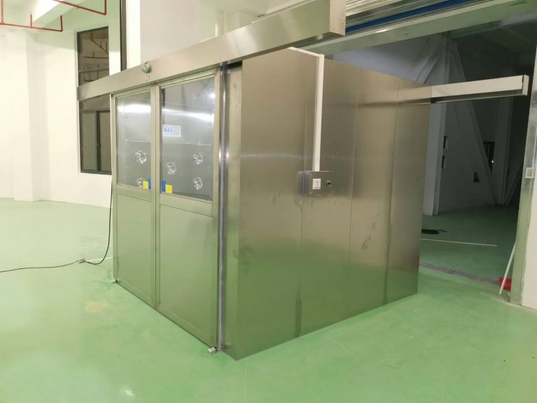 In the electronics industry, producing products requires extremely high environmental cleanliness. Even slight dust or impurities can lower electronic component performance, result in product scrapping, or cause serious quality accidents. The air shower room is an efficient auxiliary clean equipment. With its powerful air flow purging function, it has become essential to the electronics industry’s production process. It mainly prevents external contamination from entering the clean area. This ensures a stable production environment. The production of semiconductor chips demands very strict environmental cleanliness. Work usually takes place in workshops with cleanliness levels of 100, 1,000, or even higher. Raw materials like wafers, photoresists, and special gases must be transported cleanly. Semi-finished products and tooling fixtures also move during production. Here, the material shower room plays a crucial role. Before trolleys and turnover boxes enter the clean workshop, they must pass through the material shower room. The material spray chamber then activates high-pressure air flow. This flow sweeps the surfaces of materials, containers, and trolleys from multiple angles. It effectively removes dust, fibers, and other contaminants. This keeps impurities out of the production environment. It stops them from adhering to wafers and affecting photolithography accuracy or chip performance. The result is